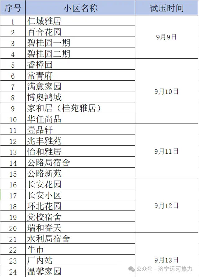 第二批試壓小區(qū)的試壓時(shí)間另行通知,請(qǐng)廣大用戶留意公眾號(hào)發(fā)布信息及單元通知欄張貼信息。